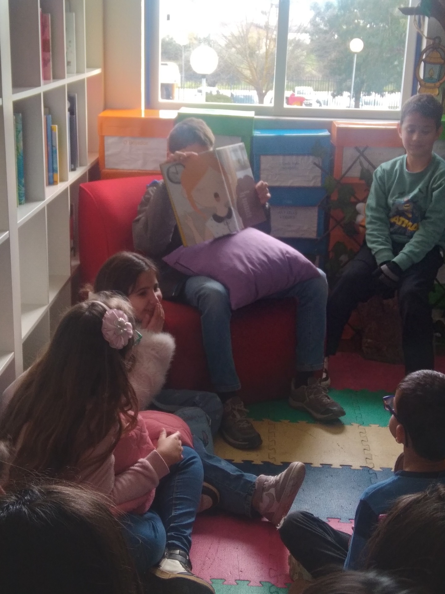 Durante a semana, as requisições de livros pelos alunos do 1º ciclo são animadas pelas histórias que as mães/pais veem contar. No nosso "cantinho mágico do conto°, os meninos e meninas escutam com atenção as maravilhosas histórias e realizam atividades alusivas às mesmas.